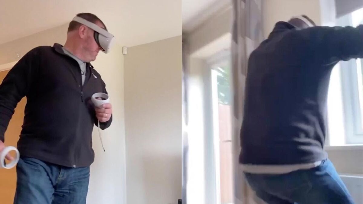El hilarante momento fue grabado en vídeo por su hija Aria Clark mientras su padre, Jason, de Doncaster (Reino Unido), se entretenía un rato con la realidad virtual el pasado 27 de abril.