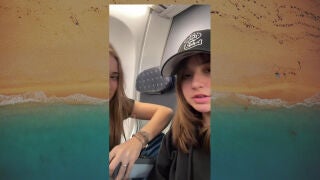 Las chicas recrearon ese momento con el reposabrazos del avión, después cortaron a unas imágenes en las que parecía que estaban cayendo y por ultimo aparecieron en bañador dándose un chapuzón en el mar.