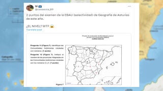 Dos preguntas "demasiado fáciles" en el examen de Geografía de la EBAU de Asturias se vuelven virales