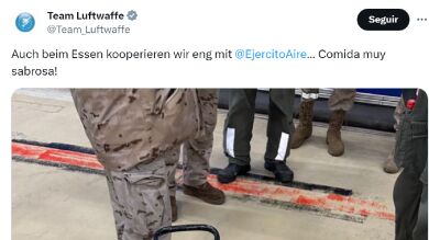 "También cooperamos estrechamente en el ámbito de la alimentación con @EjercitoAire...", escriben en alemán, mencionando el arroba de la cuenta del Ejército del Aire y del Espacio, es decir, las fuerzas aéreas españolas. "Comida muy sabrosa!", añaden en español al final del tuit.