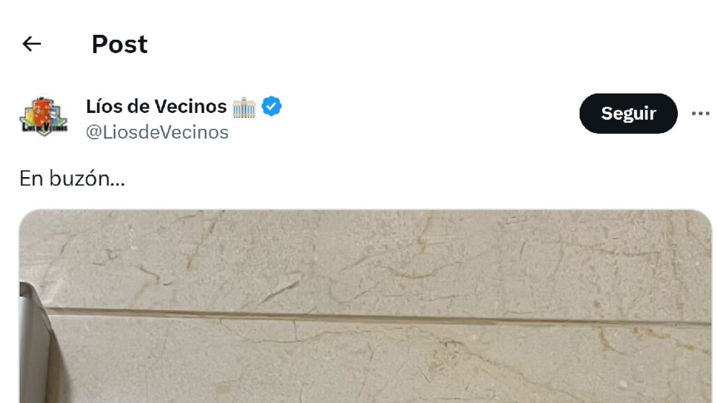 O, en su defecto, mandársela a cuentas como @LiosdeVecinos, que recopila esta clase de situaciones a cada cual más esperpéntica. Una de las más recientes es la que ha vivido un vecino que fue a abrir su buzón un día cualquiera y se encontró algo que no esperaba.