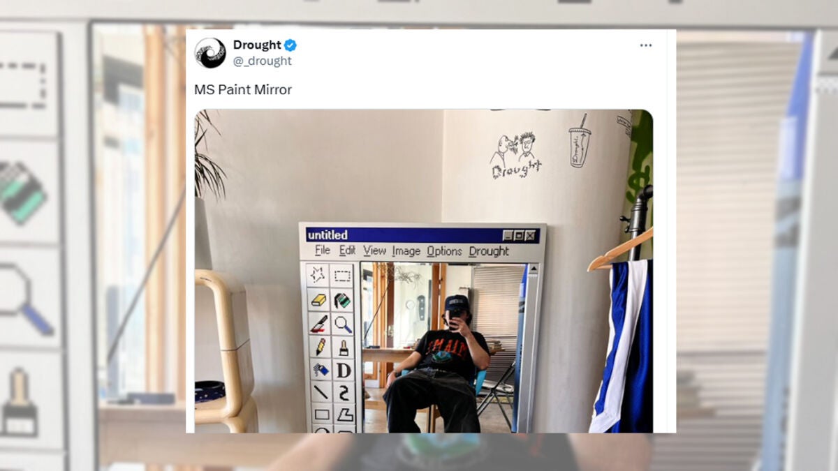 La imagen de un espejo con un marco que imita la interfaz del antiguo Microsoft Paint se ha vuelto viral en redes sociales, especialmente entre aquellos que crecieron en la era de los ordenadores con Windows 95 y 98. La publicación original, compartida por el usuario @_drought en X, ha acumulado miles de me gusta y comentarios en poco tiempo.