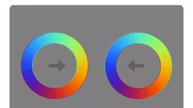 En el gif vemos dos círculos con un gradiente de colores girando sobre un fondo gris y en el centro aparecen unas flechas. Lo curioso es que los círculos parecen moverse, crecer y decrecer en el sentido que marcan las flechas.