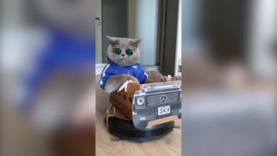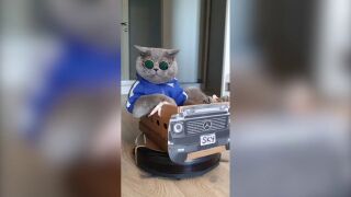 En el caso del gato de este vídeo, se ha apropiado del robot hasta tal punto que lo ha hecho su transporte personal. Sus humanos se han percatado de ello y han transformado al aspirador en un coche para que el gato se meta dentro, además de ataviarle con la vestimenta más chula que han encontrado por que sin duda este gato es el amo de su casa y de su barrio.
