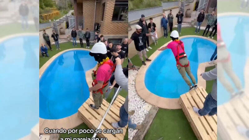 Le gastan una broma viral en su despedida de soltero: cree que salta de un puente, pero cae a una piscina