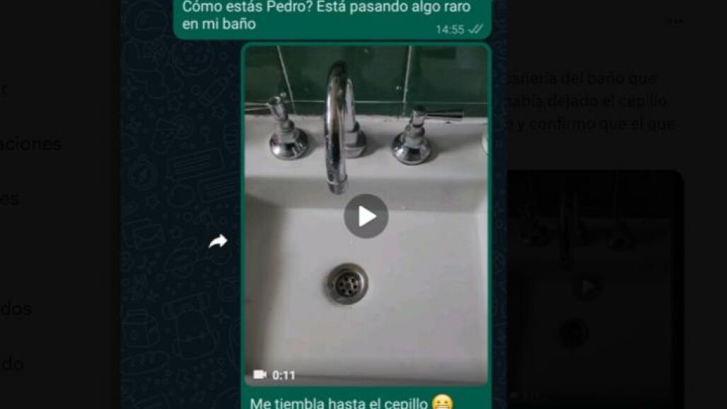 El mensaje con el que abre el chat no tiene pérdida: "Cómo estás Pedro? Está pasando algo raro en mi baño". "Me tiembla hasta el cepillo", añadió el tuitero junto al vídeo en cuestión, como si se tratara de un fenómeno paranormal.