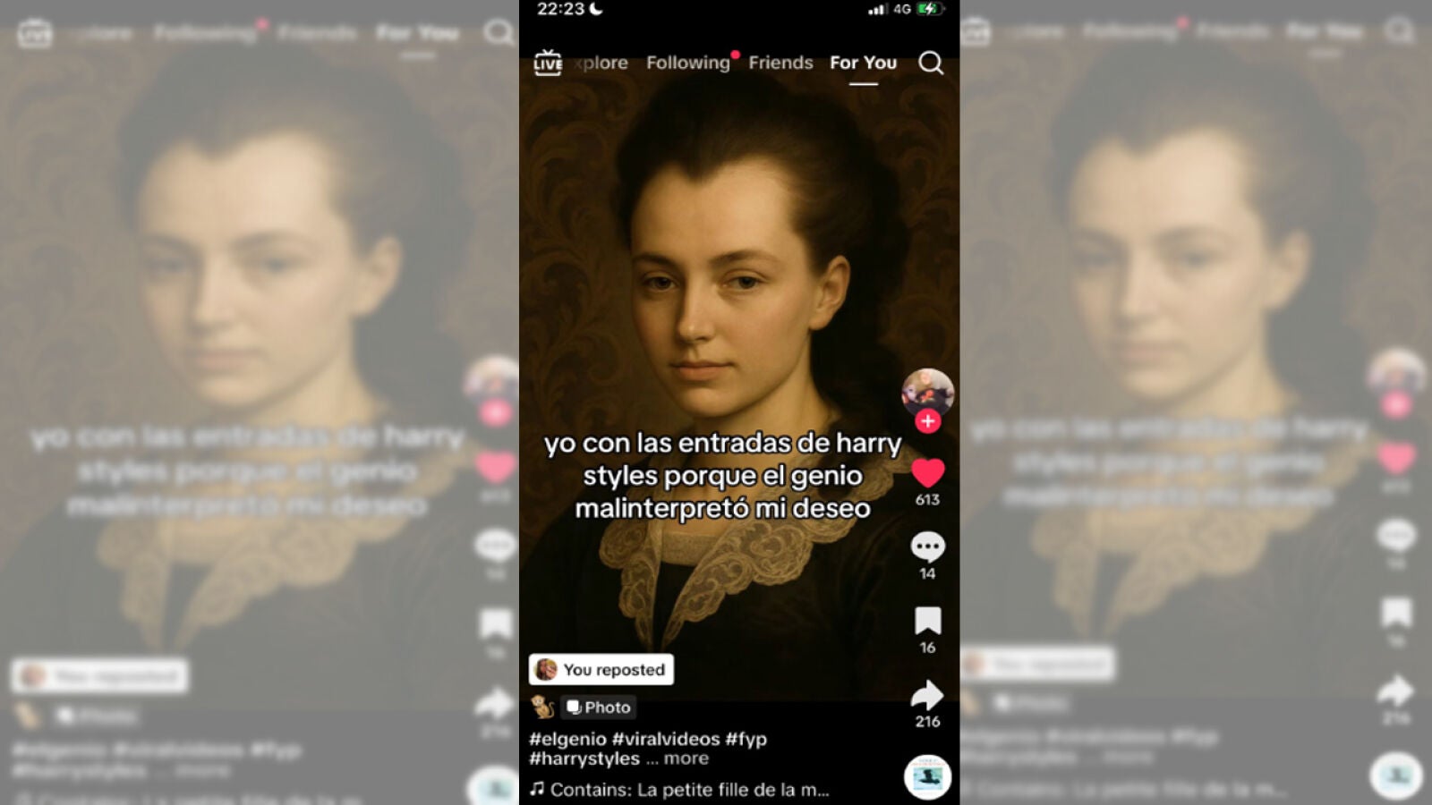 El juego consiste en imaginar un deseo común —como pedir entradas para ver a Harry Styles— y mostrar cómo el genio lo interpreta de forma literal: en este caso, entradas físicas como las del cantante en el pelo. A partir de ahí, la imaginación no tiene límites. Por ejemplo, uno puede pedir al genio tener el mejor físico y acabar con Albert Einstein.