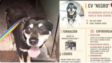 Tal como se puede ver en las imágenes difundidas en la plataforma, entre sus logros están el ser "el mejor perro de 2021-2022" y "premio al mejor compañero". Asimismo, está graduado en "incondicionalidad y mimos" y tiene intereses muy específicos como "Conseguir un dueño para sentirme feliz, comer y dormir, y tirarse panza arriba para jugar". La publicación no tardó en conmover a los usuarios y recibir un gran apoyo en masa. Ahora, se espera que Negro, de 5 años, pueda encontrar un hogar en donde le den todo el cariño que necesita.