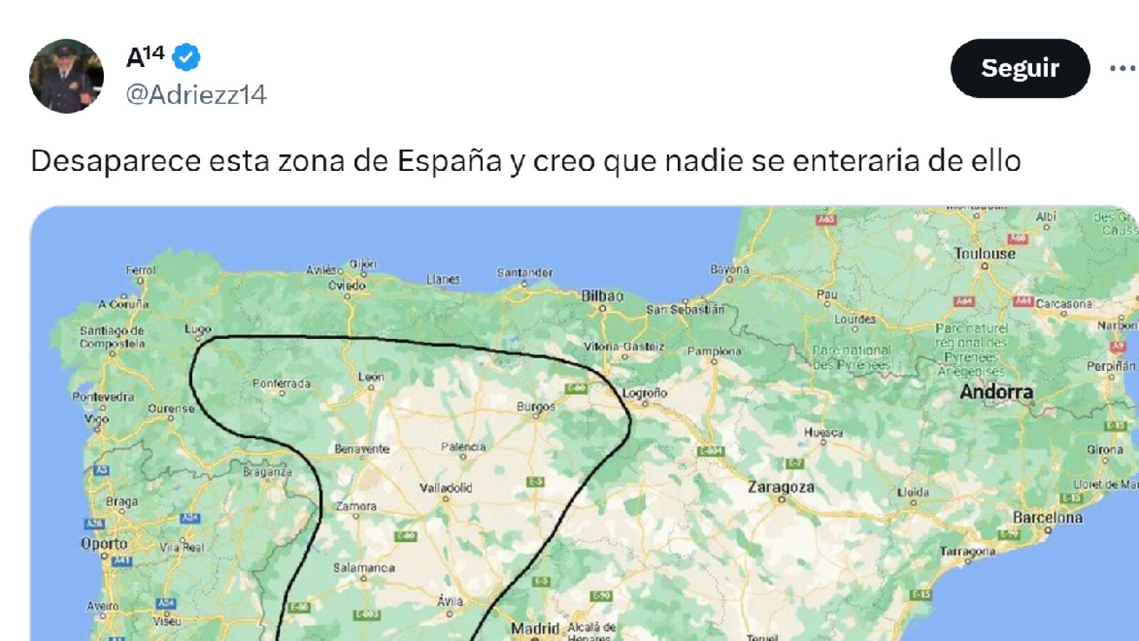 Cuando un tuit tiene más respuestas y citados que retuits, nunca es buena señal. Y aunque se ha llevado casi 8 mil likes en su publicación, el usuario de Twitter @Adriezz14 ha sido acribillado a comentarios a raíz de tuitear que "desaparece esta zona de España y creo que nadie se enteraría de ello".