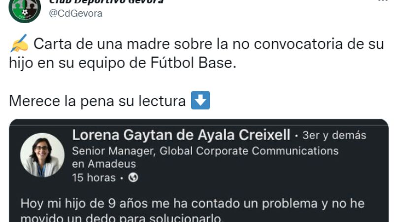 Además ha comentado que la gente se ha volcado con su historia y ha sido imposible contestar a todos: "700.000 personas pendientes de un partido de fútbol infantil en Madrid. Ni en un millón de años habría imaginado el impacto de mi post de anoche, sobre cómo manejé la decepción de mi hijo de 9 años al no ser convocado a un partido de fútbol. Como ya he perdido la capacidad de seguir el hilo de los más de 600 comentarios – me permito abrir un nuevo melón acerca de la falsa dicotomía entre disfrutar y competir".