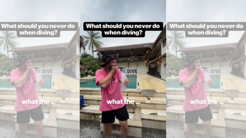 Para demostrarlo, Marcreator respira dentro de la botella a 30 metros y la lleva de vuelta a la superficie. Al abrirla, el aire acumulado explota, dejando claro cómo la presión afecta el aire abajo del agua. Algo que, de no seguir las pautas correctas a la hora de bucear en las profundidades, podría llevar a la muerte de una persona.