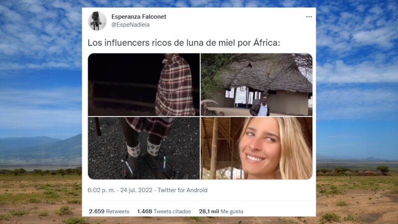 Un aplaudido hilo de Twitter crítica las fotos de la influencer Teresa Andrés Gonzalvo durante su luna de miel en Tanzania y las también indignantes imágenes de la periodista Helena Condis.
