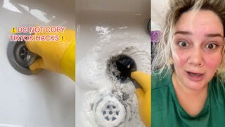 En un video publicado en la plataforma, que obtuvo más de 5 millones de visitas, la creadora de contenido mostró su desagüe sucio, vertió polvo de limpieza blanco en el desagüe y quitó con un cepillo la sustancia viscosa negra y marrón.