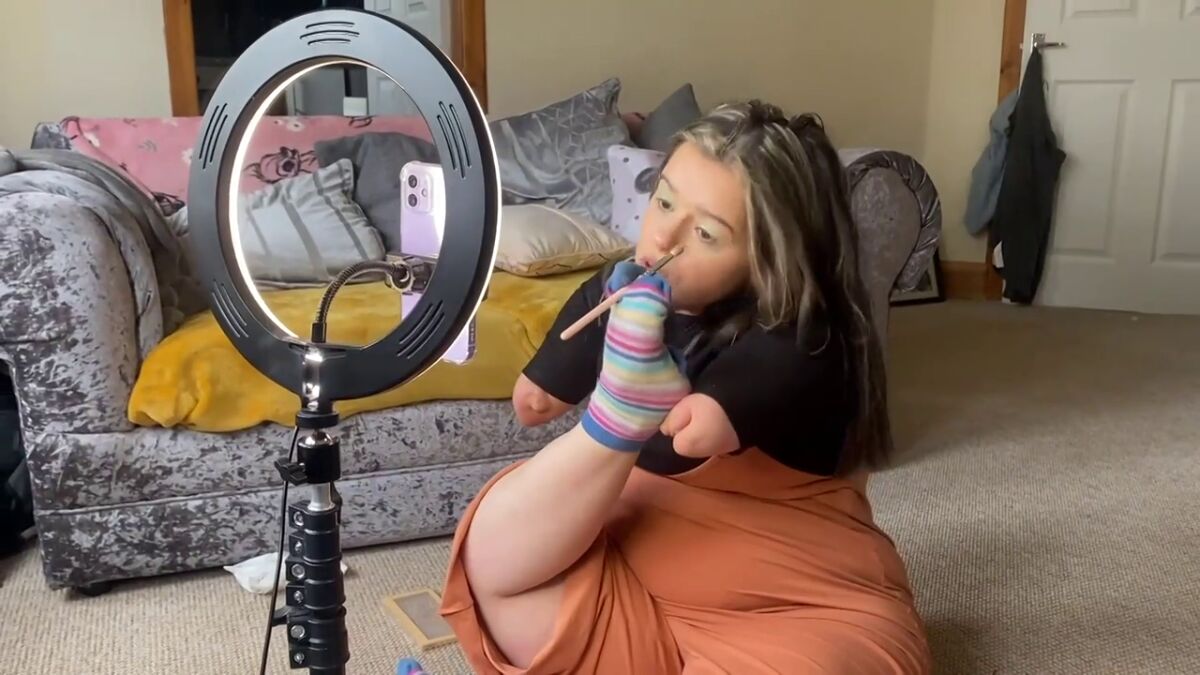 Una joven sin brazos triunfa en TikTok al mostrar como se maquilla con los pies