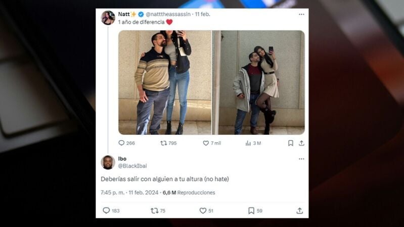 El problema llegó cuando un tuitero que se hace llamar @BlackIbai comentó "Deberías salir con alguien a tu altura (no hate)" y en otro tuit añadió que "se ve mal, lo normal es que el hombre sea más alto".