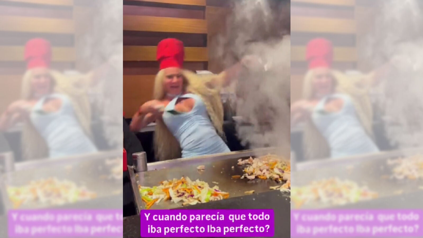 Este fin de semana, la artista acudió a un restaurante de la zona, donde quiso participar en una demostración de show-cooking junto a los cocineros. En el vídeo que ella misma ha compartido en redes sociales, se la puede ver animada, bailando con las espátulas en la plancha mientras el chef la acompaña en la escena. Todo parecía ir bien, hasta que un mal paso la llevó al suelo en una aparatosa caída que la sacó completamente del plano de la grabación.