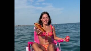 En el vídeo, la tiktoker presume de su tentempié y del montaje que ha improvisado sobre el agua: "Mira, mi bocadillo de chorizo Revilla, ¿vale? Y mi Coca-Cola fresquita illo. Escúchame, aquí me pongo yo 'espatarraga' al solecito", dice con orgullo.