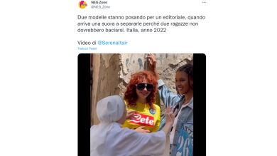 La ciudad de Nápoles ha sido la protagonista de este comportamiento tan retrógrado que ha vuelto a poner a la iglesia en duda. Mientras las actrices Serena de Ferrary y Kyshan Wilson se encontraban posando para una editorial, una monja se acercó horrorizada a separarlas alegando que eran el diablo. "¡Es el diablo! Jesús, María y José", comentaba la monja.