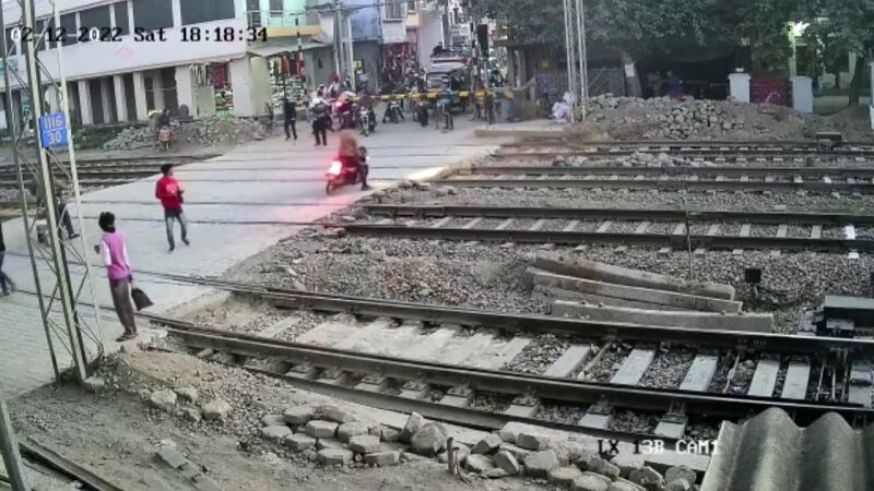 El incidente, que fue captado por cámaras de circuito cerrado de televisión, tuvo lugar cerca de la estación de tren de Acchalda en el distrito de Auraiya. El video muestra al motorista cruzando varias vías de tren en un paso a nivel, de repente, se percata de que un tren se acerca a gran velocidad por su izquierda. Rápidamente deja caer su motocicleta y consigue evitar el impacto por apenas unos centímetros. La moto quedó totalmente destruida y en el vídeo podemos apreciar como el conductor se aleja del peligro de forma cautelosa y por su propio pie.