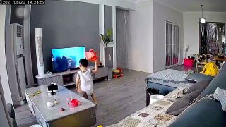 Este pequeño se encuentra viendo unos dibujos en los que dos robots pelean. El niño, en acto de querer ayudar al bueno, comienza a tirar sus juguetes contra la pantalla. Desgraciadamente para los padres, la pantalla no soporta la gran fuerza que emplea su hijo para derrotar al villano. A pesar de que con el primer juguete la pantalla ya se empieza a resquebrajar, no se da por vencido y continúa reuniendo objetos que lanzar al enemigo hasta que se pierde la imagen por completo. Eso sí, cuando tira una papelera al suelo sin querer, se preocupa de recoger el contenido derramado.