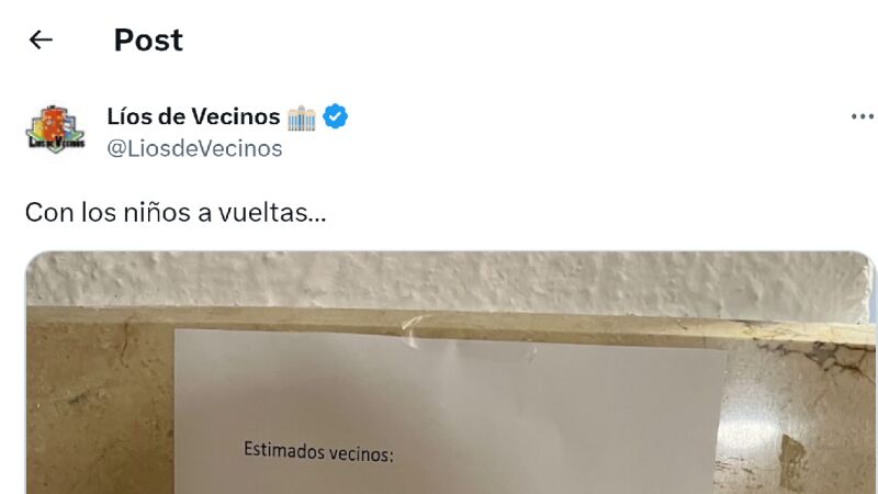 Esa podría ser la situación de los niños de los que los vecinos de esta comunidad se han quejado, como refleja el cartel que ha compartido en Twitter la cuenta @LiosdeVecinos.