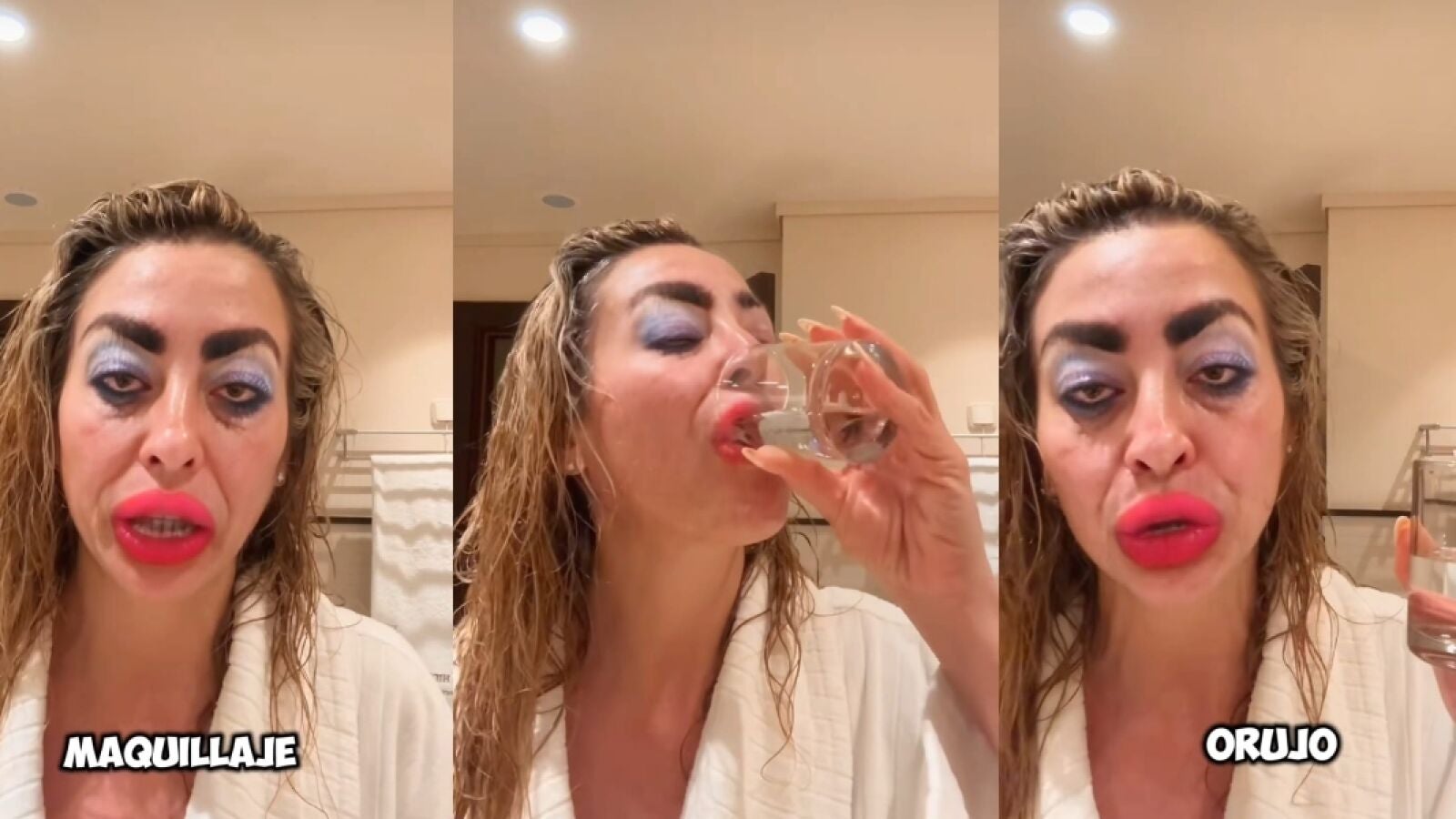 "Como me habéis preguntado tanto por mi maquillaje, me he animado a haceros este video" así comienza Laia este peculiar tutorial. "Estoy supermotivada", añade, antes de explicar la importancia de preparar la piel con un "vasito de orujo" para mantenerla hidratada.