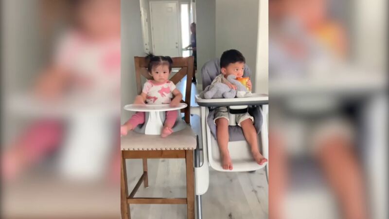Un padre pone a prueba a su hijo de dos años para ver si comparte la comida con su hermana