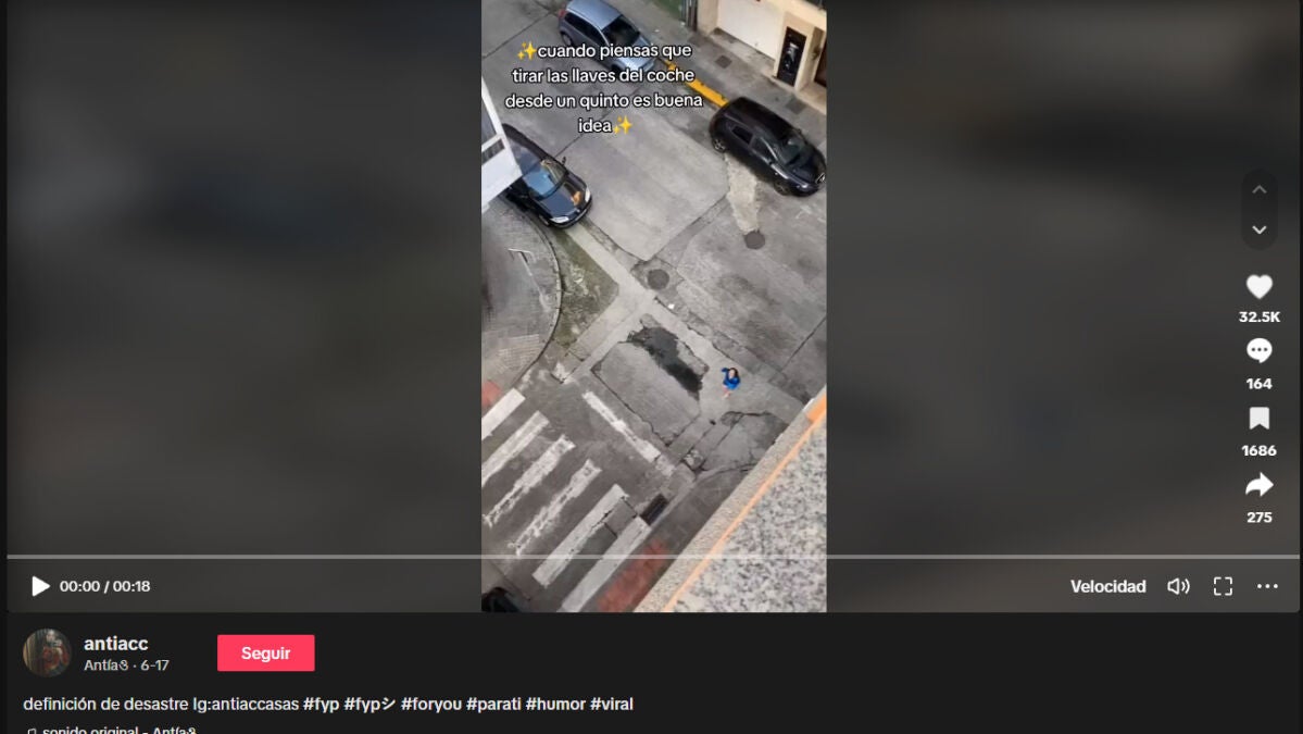 La usuaria de TikTok @antiacc ha publicado el vídeo en el que se ve como un amigo le tira las llaves del coche desde la ventana a la calle pero acaba saliendo todo mal.