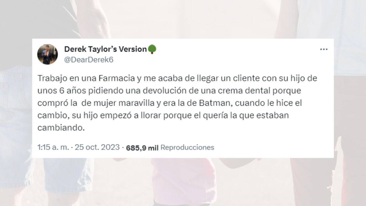Por mucho que pasen los años y cada vez exista más conciencia social respecto a lo importante que es dejar a las personas utilizar los productos que quieran, dejando a un lado los estereotipos de género, todavía existen quienes creen que es importante mantenerlos. Y, precisamente, este es el tipo de persona con la que se ha encontrado Derek, un tuitero que trabaja en una farmacia y ha sido testigo de una situación "absurda" a la vez que "dolorosa", cuando un padre ha llegado con su hijo para cambiar el tubo de pasta dental que había comprado.