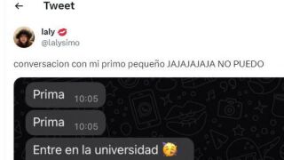 Eso es lo que hizo este chico nada más enterarse de que iba a entrar en la universidad, escribir a una de sus primeras para contarle las buena noticia. La conversación que tuvo Laly con su primo pequeño fue tan épica y divertida que no ha duda compartirla con todo el mundo a través de su cuenta de Twitter.