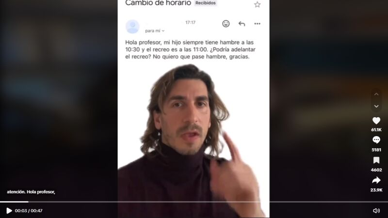 Un profesor de colegio arrasa en TikTok al compartir los mensajes más locos que le mandan los padres: "¿Podría adelantar el recreo?"