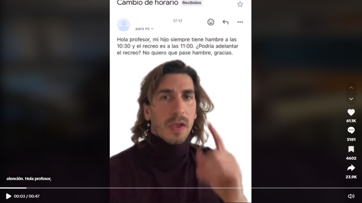 Un claro ejemplo de esta situación lo ha expuesto en redes sociales el profesor español Gerard Alarcón, conocido como @maestrodecolegio, quien cuenta con más de 1.5 millones de seguidores. En uno de sus vídeos más recientes, ha compartido algunos de los mensajes que ha recibido de los padres de sus alumnos, dejando en evidencia ciertas actitudes de sobreprotección.