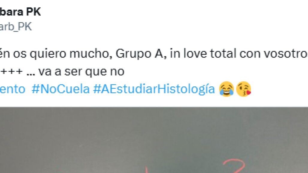 La última de esas historias la hemos descubierto en X, el antiguo Twitter, donde Bárbara PK está dando que hablar. Esta profesora de Histología de la Universidad de Alcalá no dudó en compartir el mensaje que le habían dejado sus alumnos en la pizarra aprovechando un momento de ausencia.