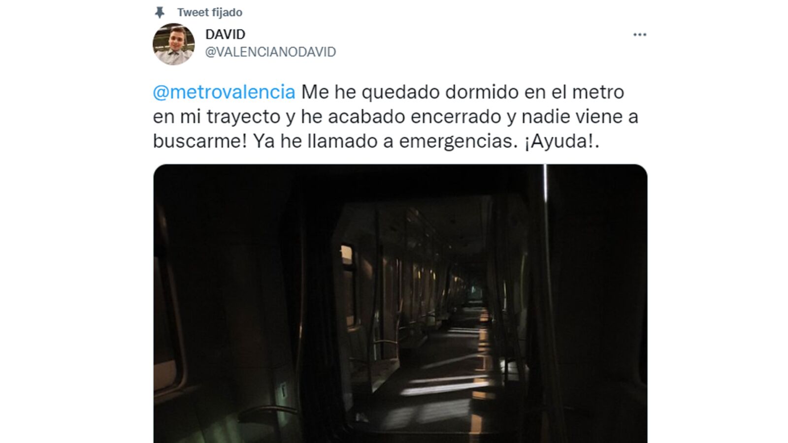 Pues bien, esto le ha ocurrido a David Bonilla, un chico valenciano de 22 años que se quedó dormido en el metro y se despertó ya en las cocheras. David subió su historia en Instagram y Twitter, llegando a hacerse viral muy rápido y superando los 7.000 'me gusta'.