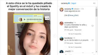 "A esta chica se le ha quedado pillado el Spotify en el móvil y ha creado la mejor conversación de la historia", escribió @ceciarmy junto a una foto de la chica y un vídeo en el que se pueden escuchar los desternillantes audios.