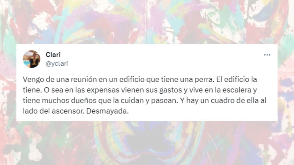 Es tal el amor que sienten estos vecinos por esta Lila (nombre que le han puesto a esta perrita), que incluso decidieron poner un cuadro de ella al lado del ascensor, algo que ha fascinado totalmente a la tuitera. Además, es una perrita de la que todos se hacen cargo, por lo que no solo pagan entre los vecinos sus gastos, sino que también se encargan de pasearla por turnos.