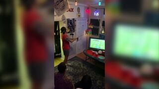 El vídeo se corta dramáticamente en este punto y no nos deja ver mucho más de la reacción de los presentes, sobre todo del causante del destrozo, el que, imaginamos, será el dueño de la televisión.