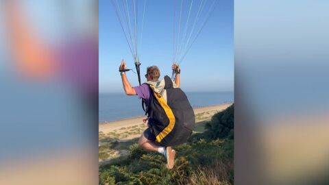 Salta en parapente y hace el ridículo: La absurda caída que ha conquistado internet