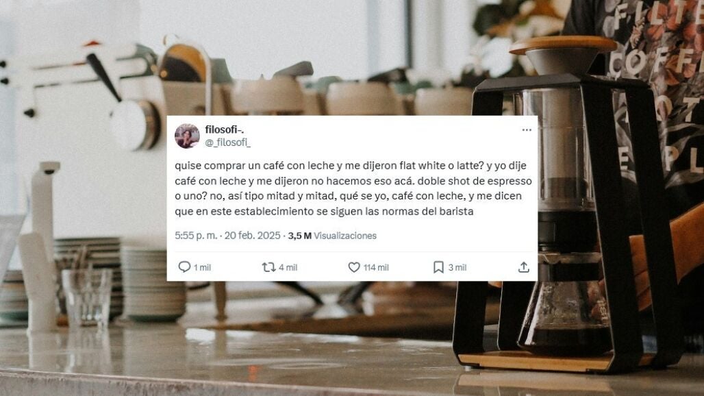 La tuitera @filosofi relató en su cuenta de la red social X (anteriormente conocida como Twitter) lo que le ocurrió al visitar una cafetería de especialidad en Buenos Aires y pedir un simple café con leche.
