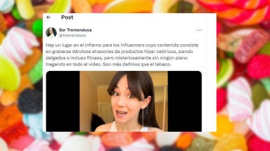 Ha sido una usuaria llamada @tremenduca quien ha abierto el melón tuiteando lo siguiente: "Hay un lugar en el infierno para los influencers cuyo contenido consiste en grabarse dándose atracones de productos hiper calóricos, siendo delgados o incluso fitness, pero misteriosamente sin ningún plano tragando en todo el video. Son más dañinos que el tabaco". Junto al texto, podemos ver el vídeo de una influencer ingiriendo una gran cantidad de dulces industriales. Además, @tremenduca también ha compartido otro vídeo en el que demuestra que en muchos de estos vídeos no se ve cómo los creadores de contenido tragan la comida, por lo que todo podría ser un engaño.