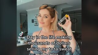 "Me encanta sentarme junto a la piscina y llenar los frascos con el sudor de mis senos, pero también es un trabajo duro, que no os engañen", comenta la mujer en uno de sus vídeos de TikTok.