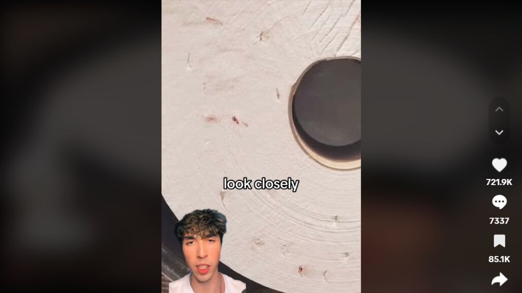 En la imagen que muestra el tiktoker, el lateral del rollo tiene varias pequeñas manchas rojas. "Eso no es porque a alguien le haya sangrado la nariz o por un pequeño accidente", comenta. Y a continuación aclara: "Es porque alguien ha limpiado ahí sus agujas sucias".