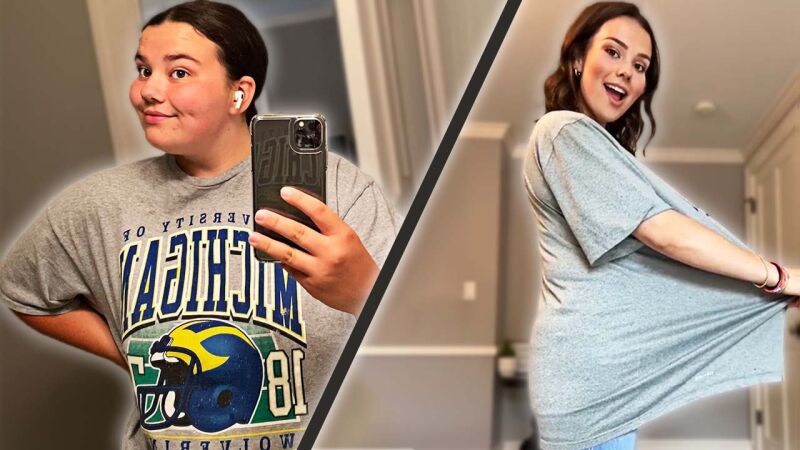 Una TikToker se vuelve viral probándose su antigua ropa después de perder 60 kilos