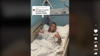 "No lo intentéis en casa, ya sabéis", dice al final de su tiktok antes de mostrar un par de fotos que le hicieron en la camilla del hospital después de la operación en las que se la ve sonriente junto al famoso cepillo.