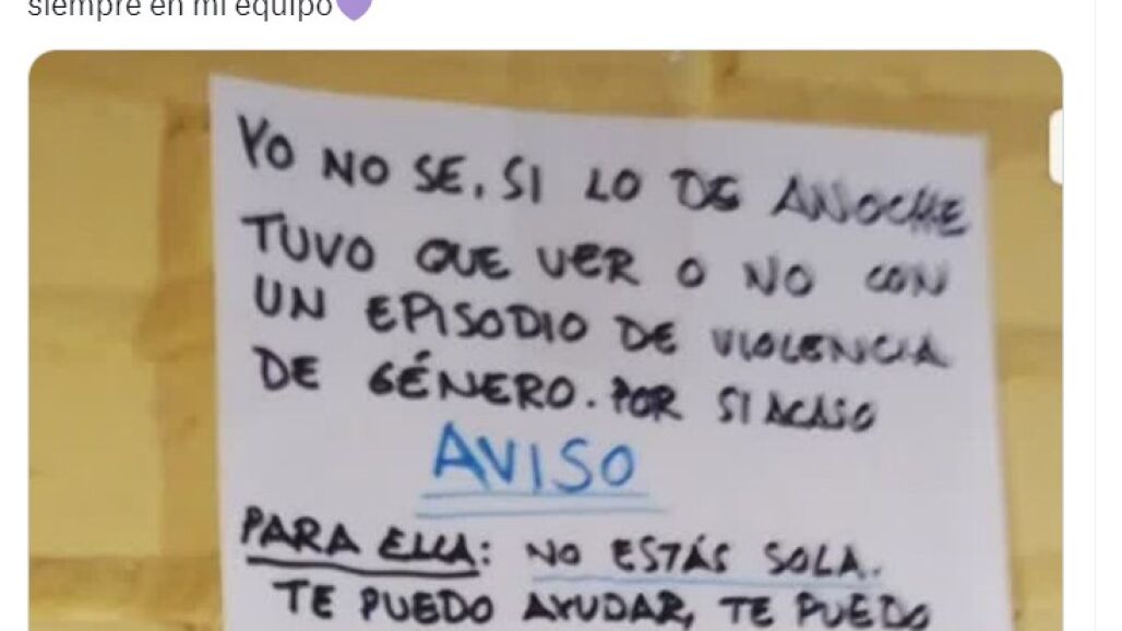 La cuenta de Twitter @kalimotxooa ha compartido este cartel que ha llamado tanto su atención. En la nota se lee "Yo no sé si lo de anoche tuvo que ver o no con un episodio de violencia de género. Por si acaso, aviso: para ella, no estás sola. Te puedo ayudar, te puedo defender, te puedo acompañar a donde haga falta. Échame una nota en el buzón. Confía", escribe el vecino.