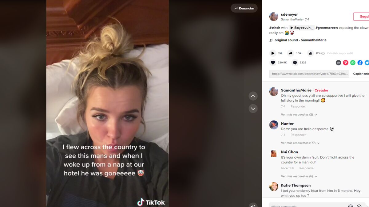 Samantha Marie (@sdenoyer) cuenta cómo la abandonó sin decir nada a través de dos publicaciones en Tik Tok que cosechan más de 2 millones de visitas