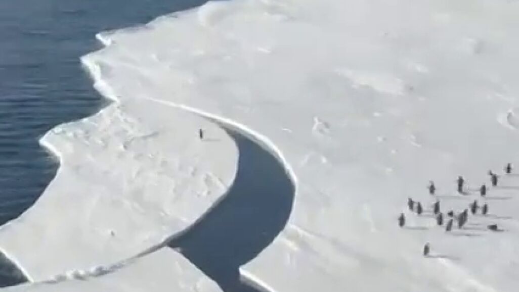 El trepidante vídeo de un pingüino a punto de quedarse aislado en el hielo que todos están compartiendo